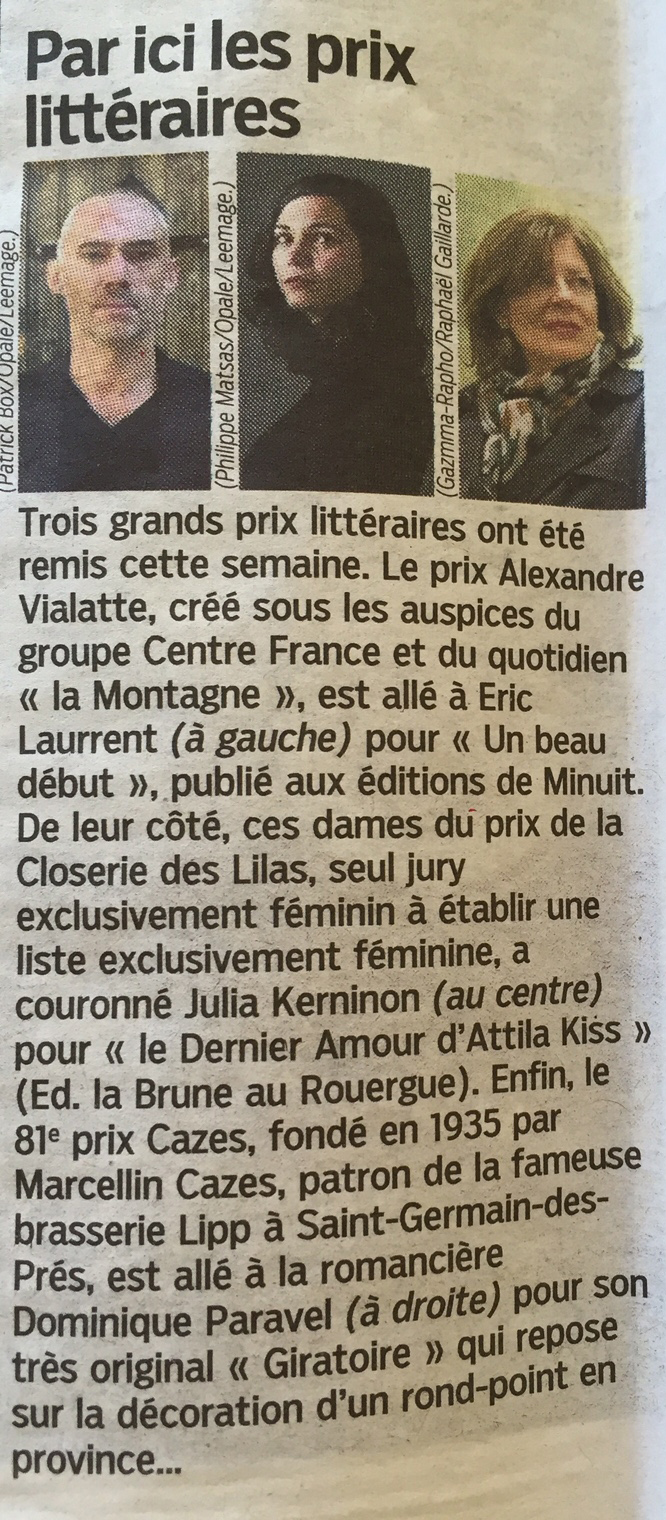 Retour sur les articles de presse (papier ou en ligne) autour de l’édition 2016 du Prix de la Closerie des Lilas.